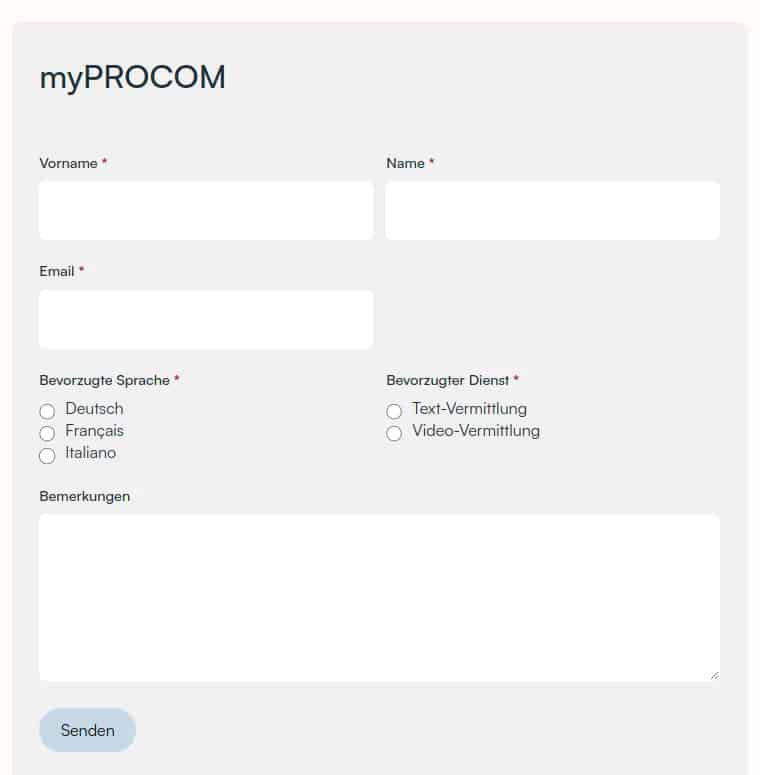 Registrieren Sie sich für myPROCOM. Und kommunizieren Sie noch heute mit hörenden Menschen. Dieser Dienst ist kostenlos.