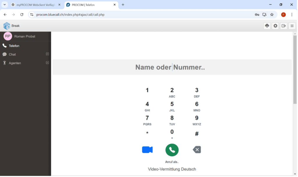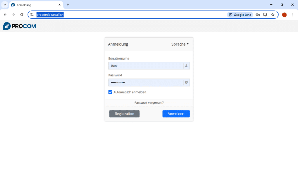 1. https://procom.bluecall.ch/ im Browser eingeben