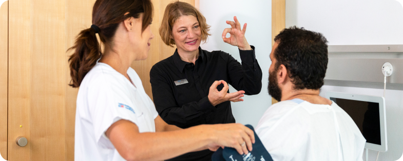 Dank Ihrer Spende bewegen wir für gehörlose und schwerhörige Menschen unsere Hände. Das heisst konkret, dass wir mit Ihrer finanziellen Unterstützung in der Lage sind, vor Ort oder über Video zu dolmetschen, gesprochene Sprache in Text oder Text in Gebärdensprache zu übersetzen. Damit wir alle dazugehören.