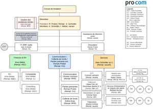 Au niveau du personnel, de nouvelles responsabilités ont notamment été développées. Au sein de la division Finances & RH, Irma Weber assume la responsabilité globale générale. Le domaine de la Communication est dirigé par le directeur général Roman Probst, qui englobe également les relations avec les parties prenantes et les bienfaiteurs de PROCOM.