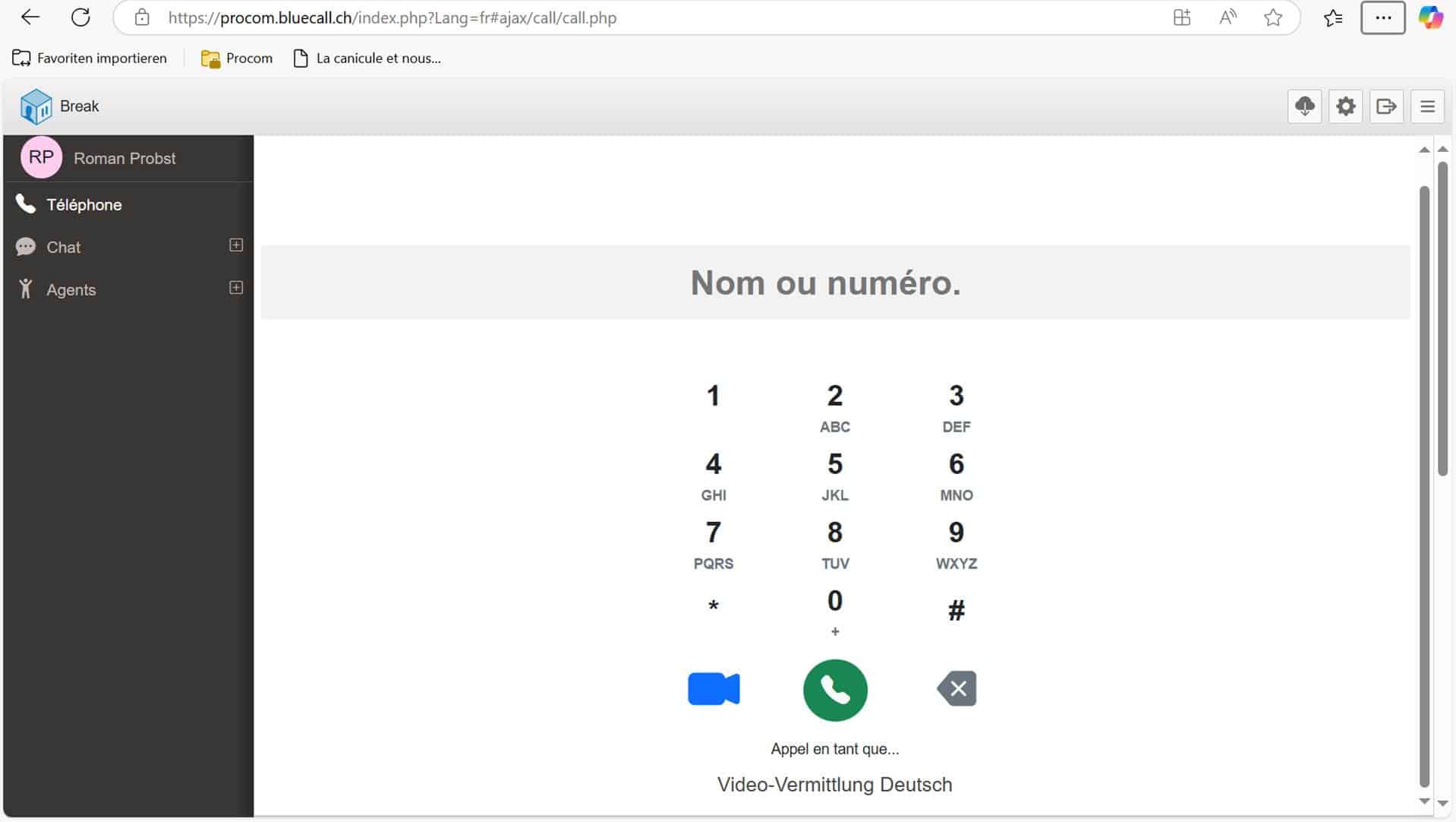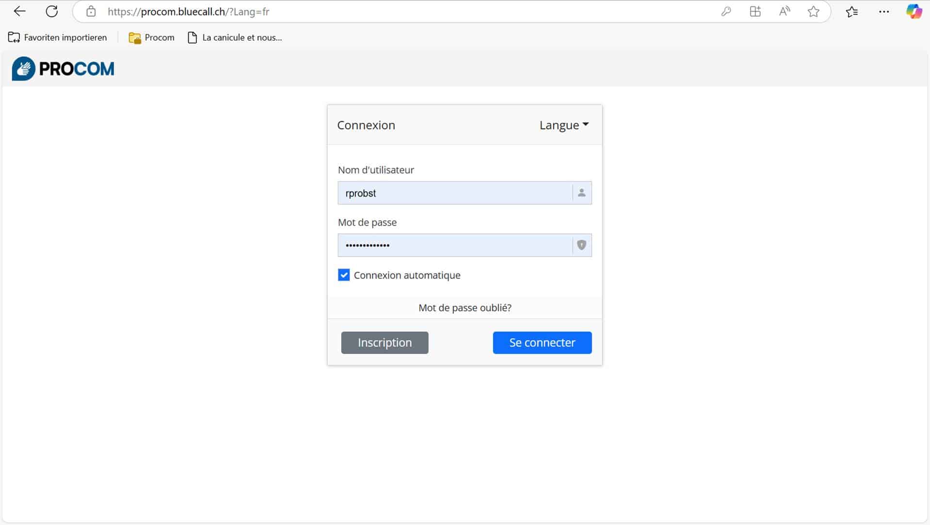 1. Saisir https://procom.bluecall.ch/ dans le navigateur