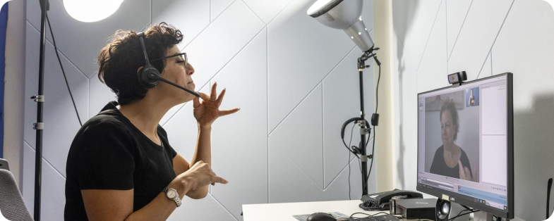 • La conversazione inizia: l’interprete traduce la conversazione tra la lingua dei segni e la lingua parlata. In tempo reale.