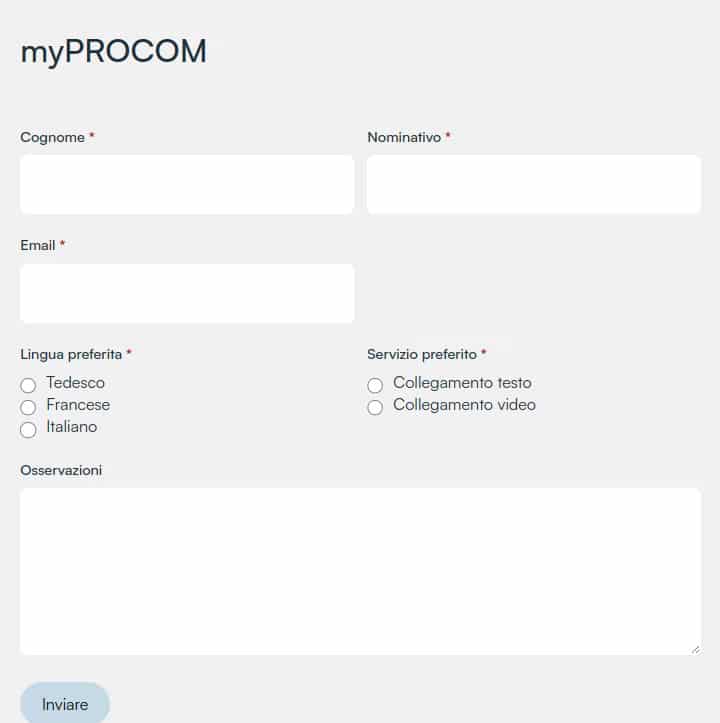 Se desiderate un’assistenza personalizzata, contattateci all’indirizzo support@procom.ch.