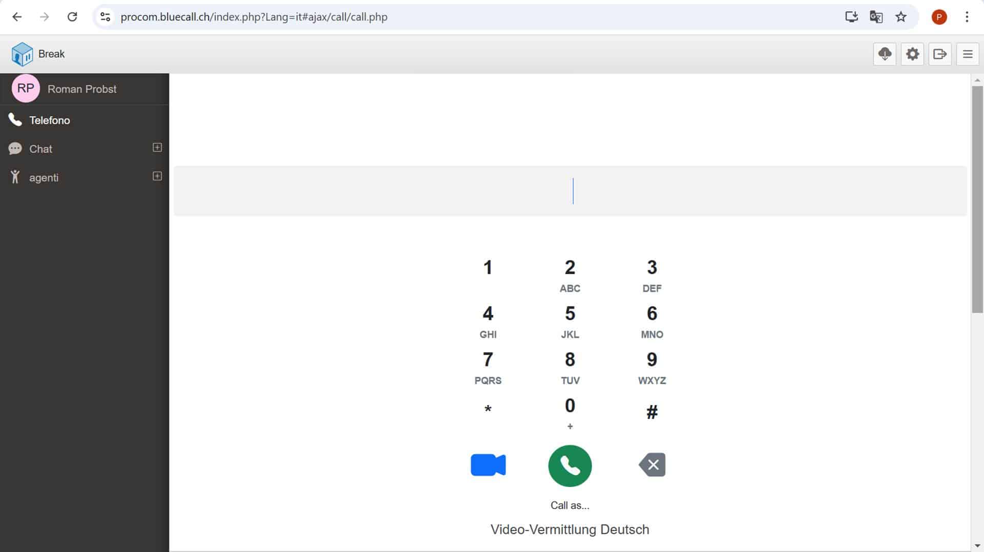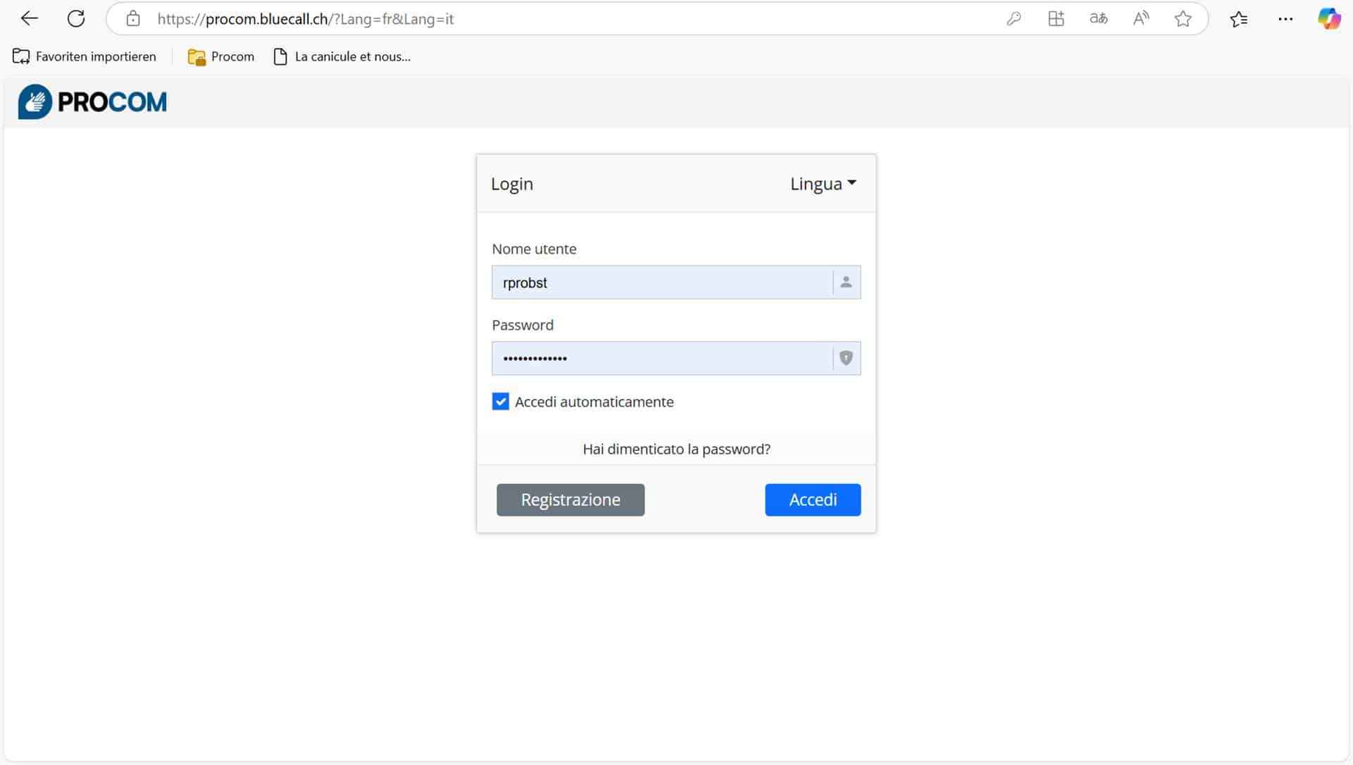 1. Inserite https://procom.bluecall.ch/ nel browser